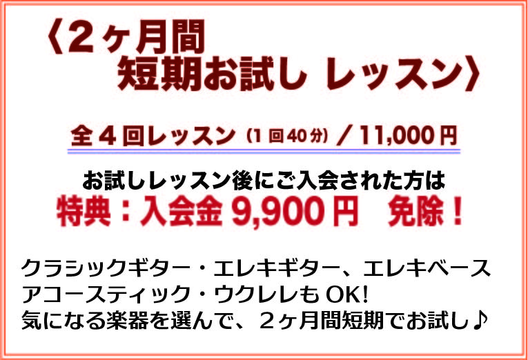 「お試しレッスン」後に正式に入会された方は入会金が免除となります。ぜひこの機会をお見逃しなく!!